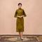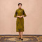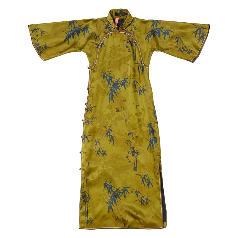 红馆旗袍2025春夏新款花罗香云纱长款倒大袖宽松复古高端旗袍翠玉簪 黄色 S