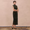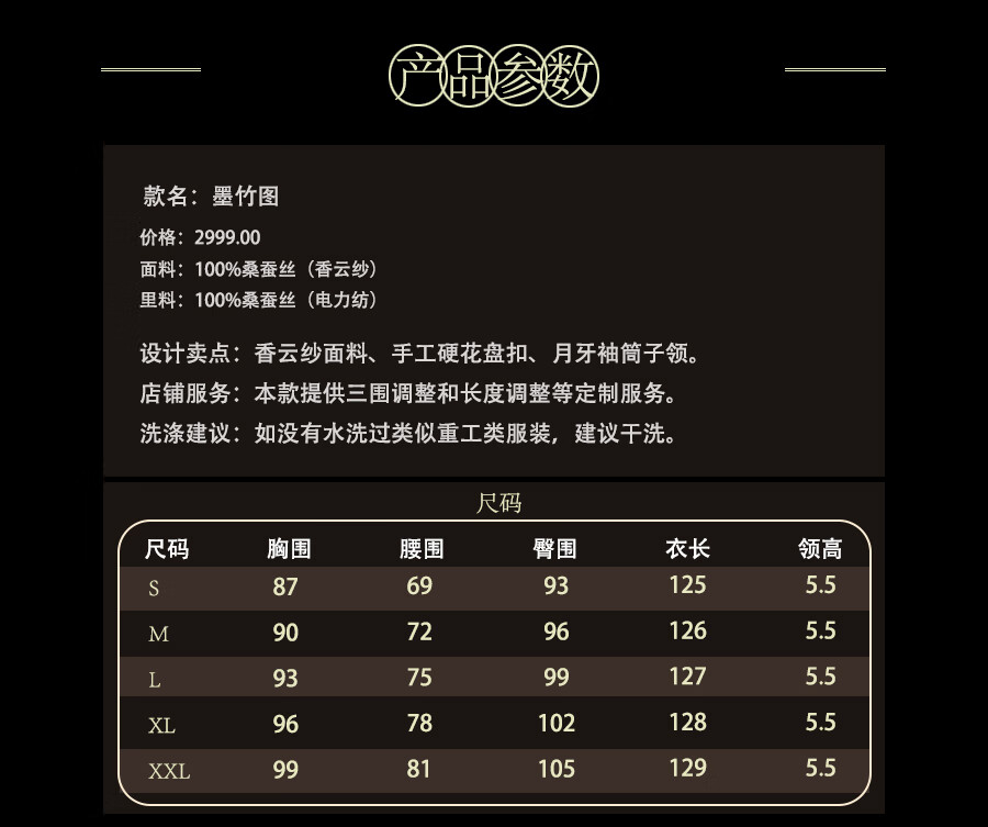 红馆旗袍2025夏季新一片式古法修身款式香云纱高端高级黑色长款旗袍沐栀子 黑色 S