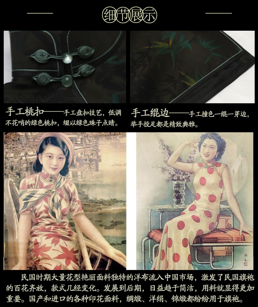 红馆旗袍2025平裁连肩无省收腰真丝提花缎传统复古手工定制旗袍柳条风 绿色 S
