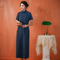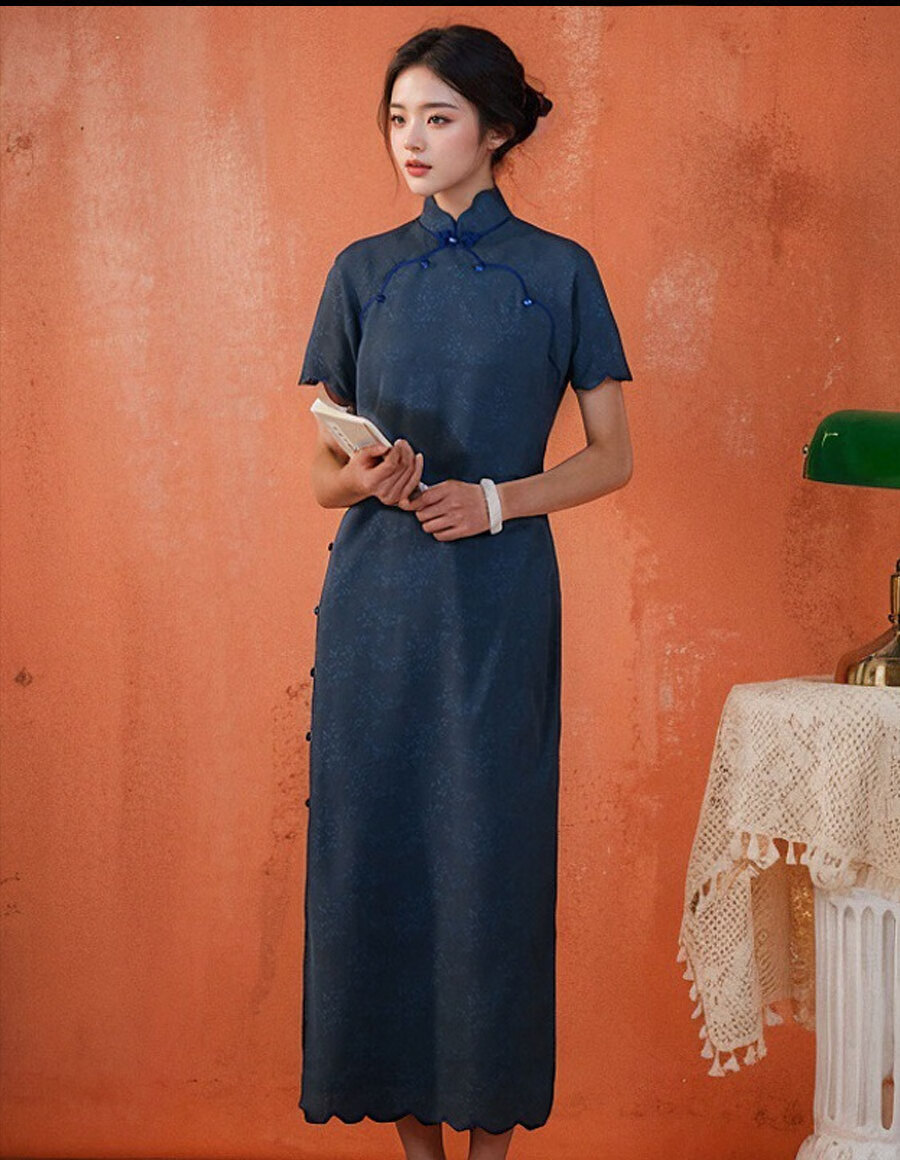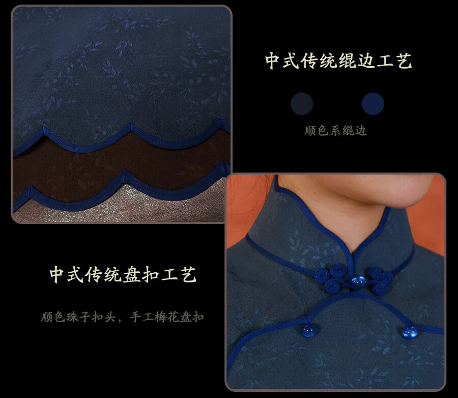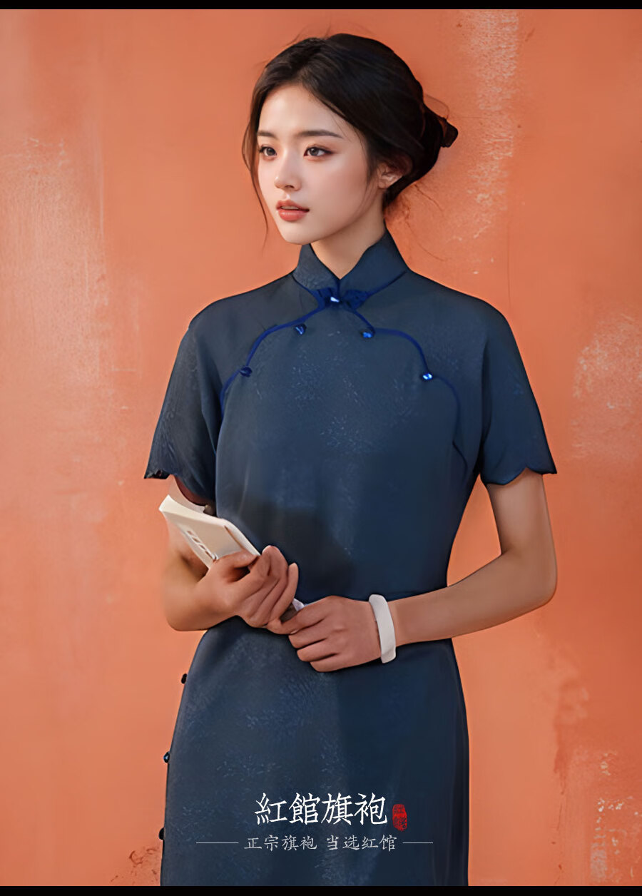 红馆旗袍2025春夏新长款香云纱老式古法民国复古传统香云纱旗袍探春令 深蓝色 S