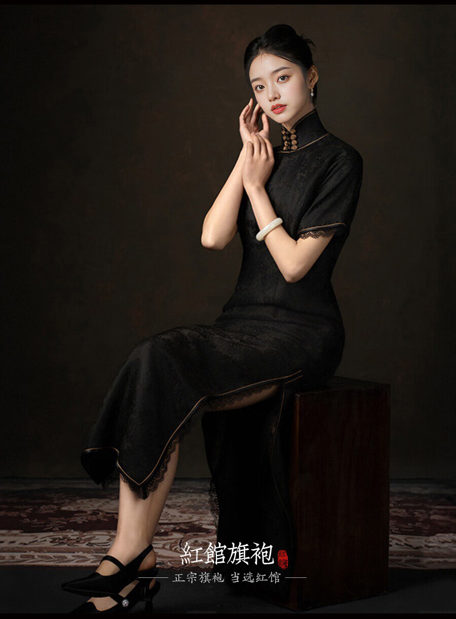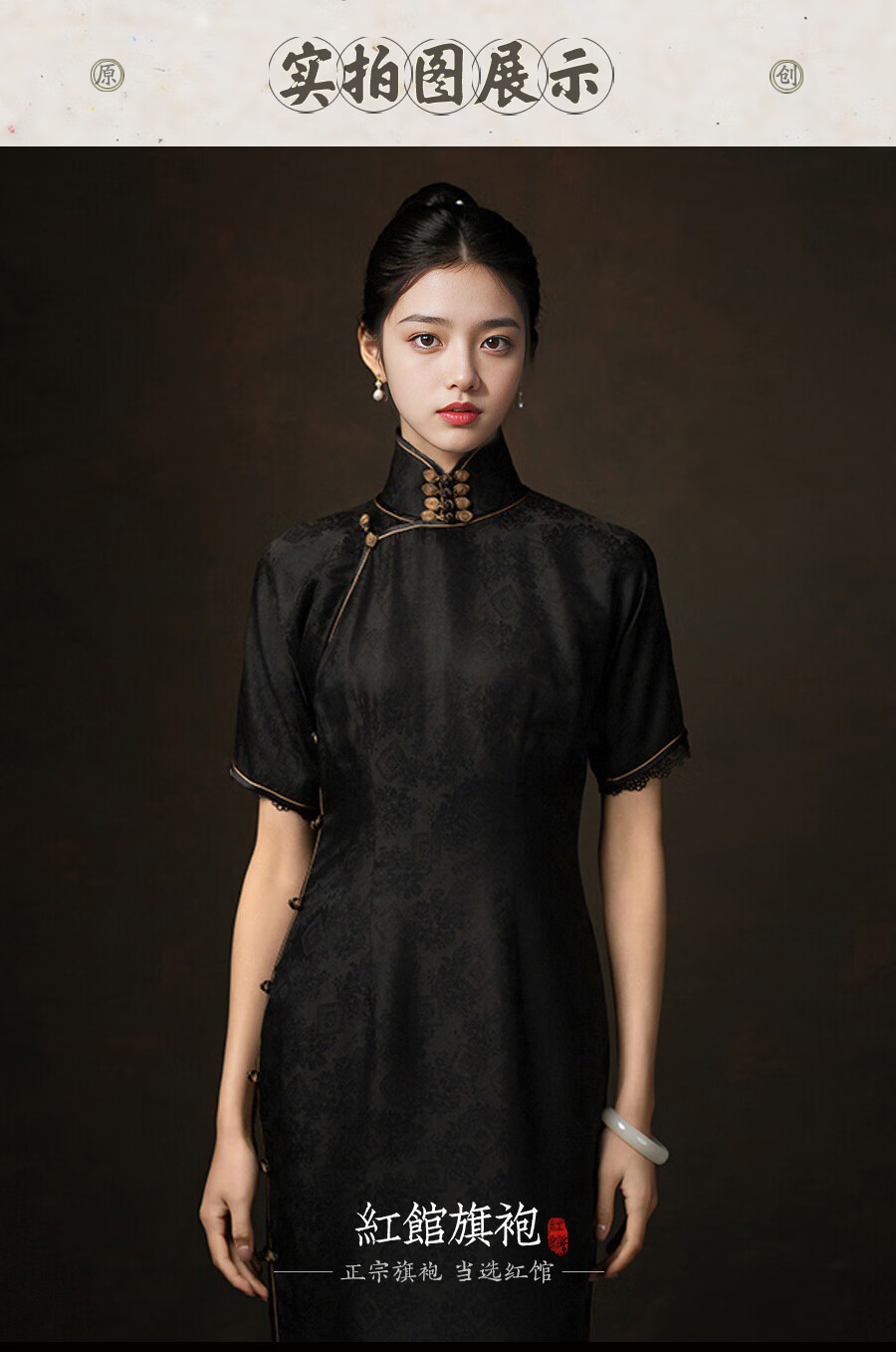 红馆旗袍2025春夏新款旗袍搭配半身裙A字半裙新中式绣花裙秋月凉 黑色 S