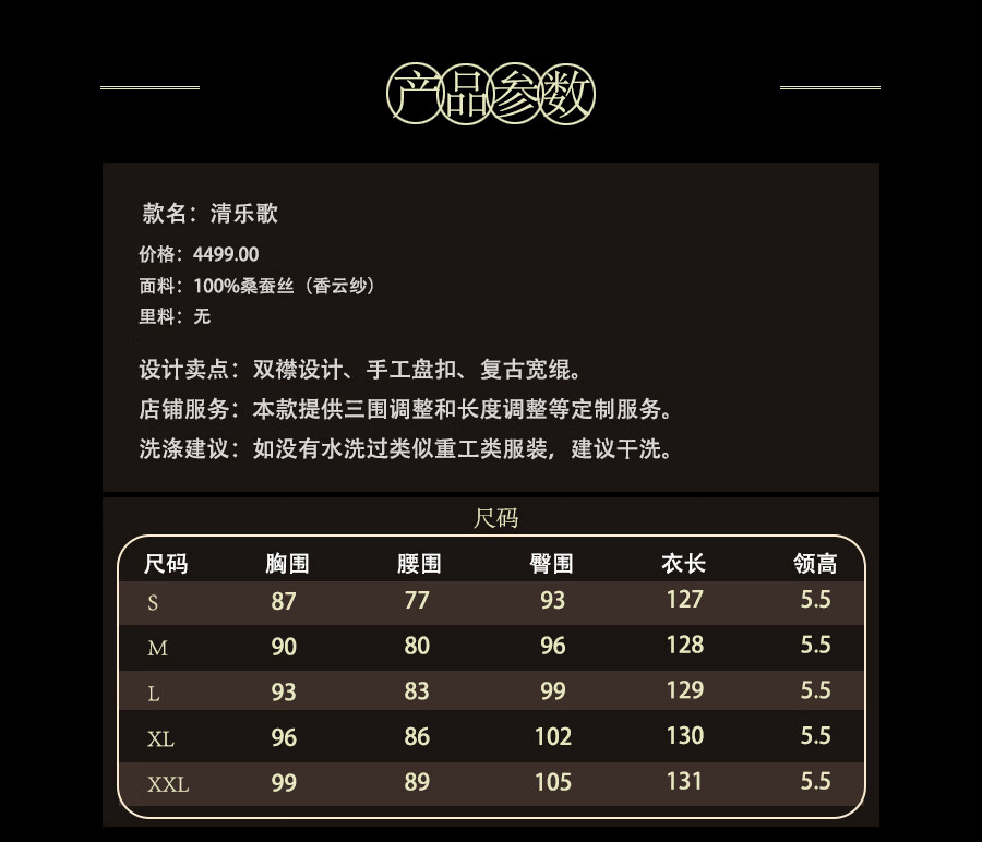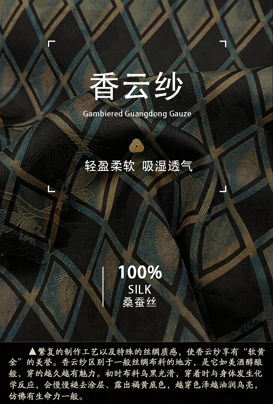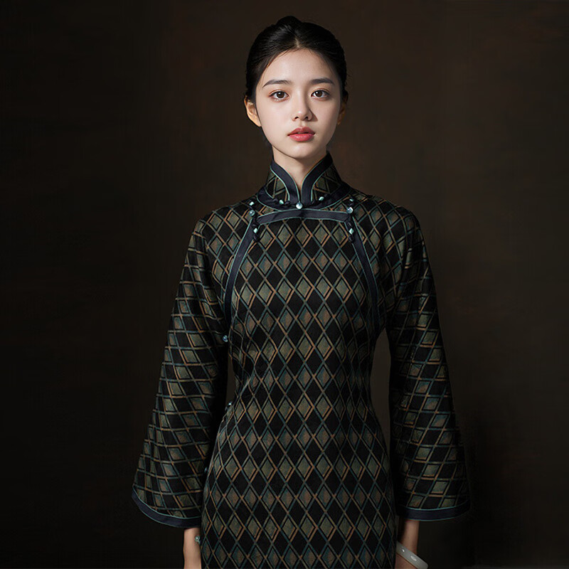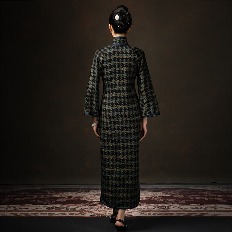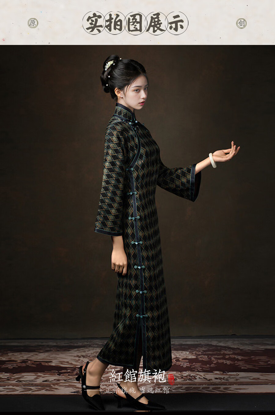 红馆旗袍红馆旗袍老料香云纱倒大袖纤细手臂七分袖旗袍清乐歌 黑色 S