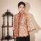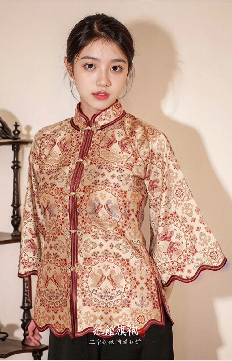 红馆旗袍红馆旗袍新中式国风高端宋锦古法倒大袖手工定制民国风上衣夕阳道 粉红色 S