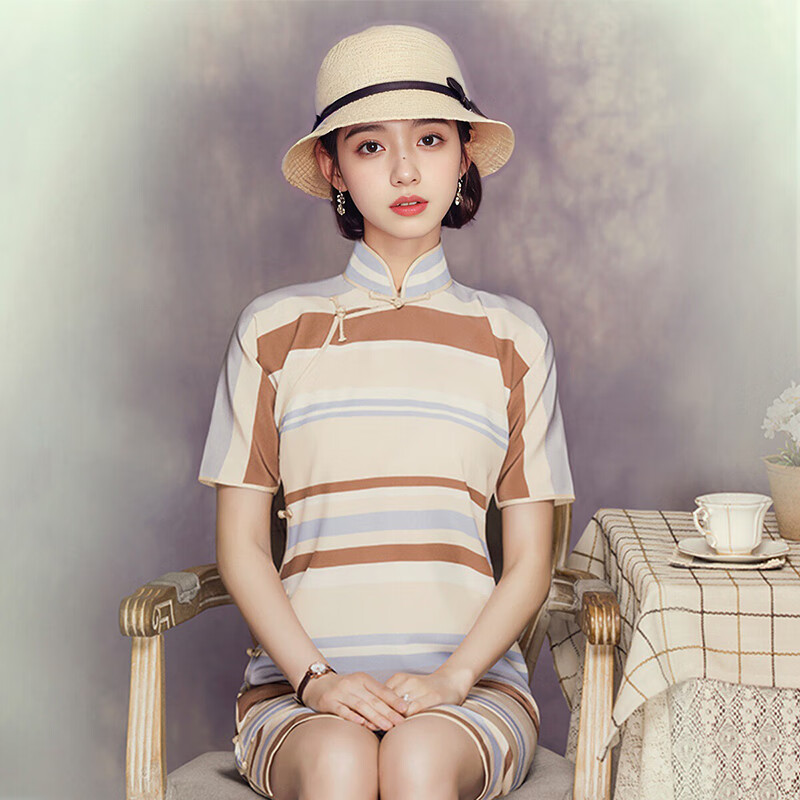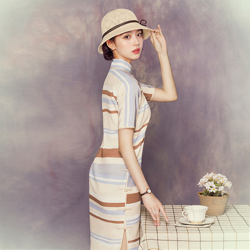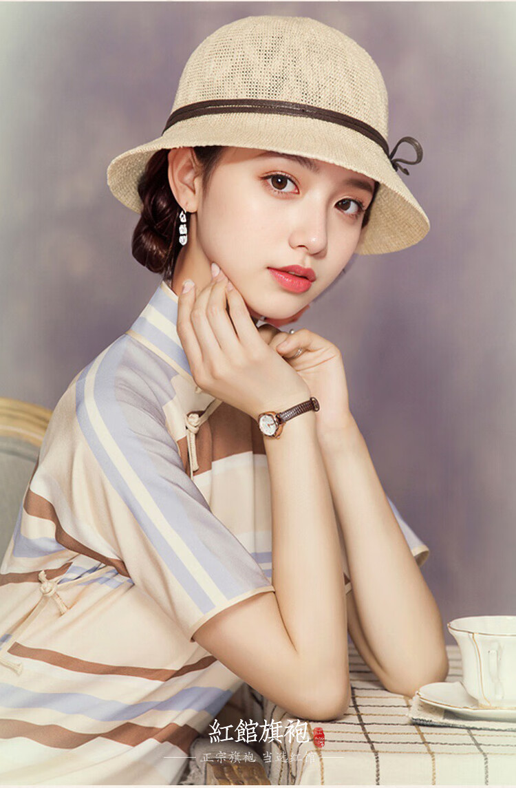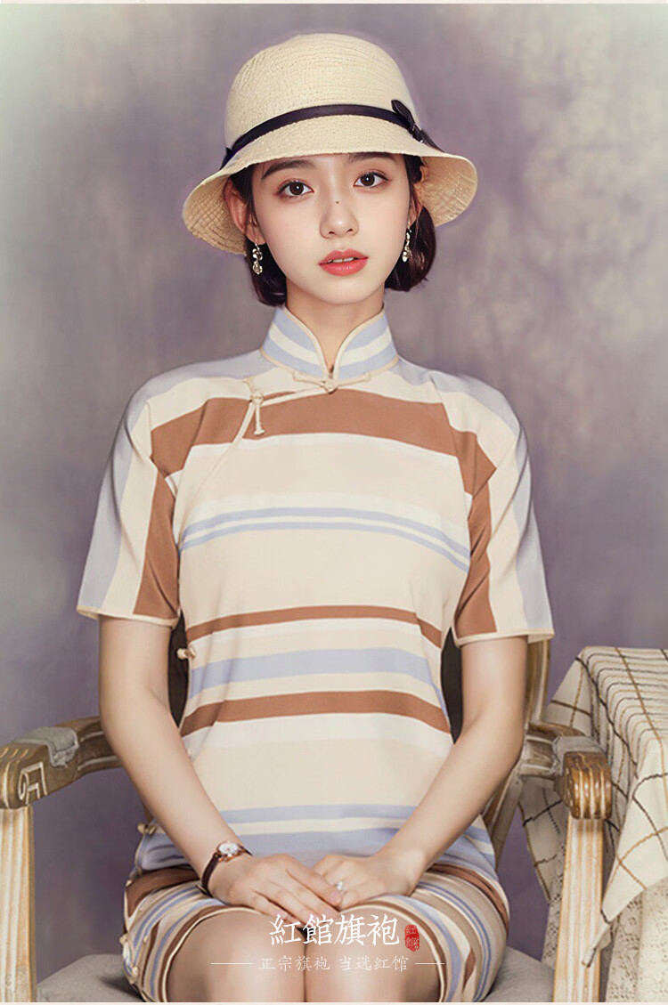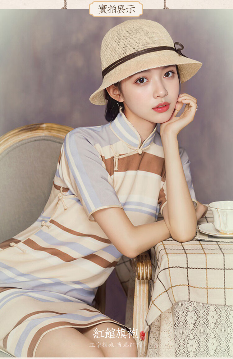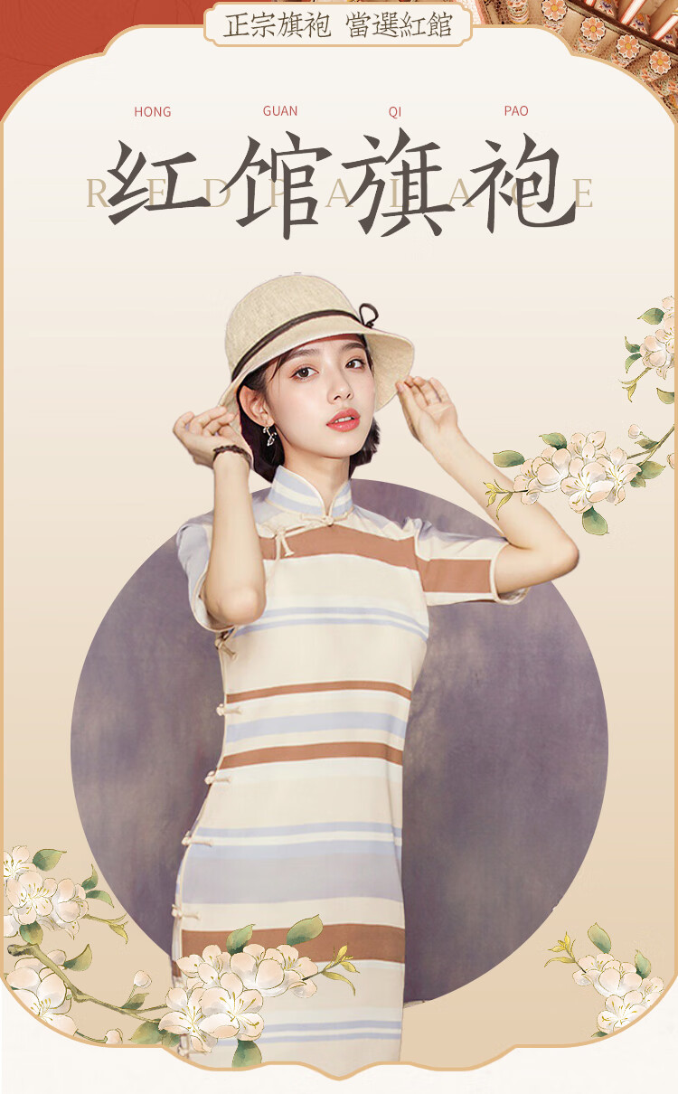 红馆旗袍2025春夏新款高端优雅年轻款少女改良高端真丝旗袍百花妆 浅黄色 M