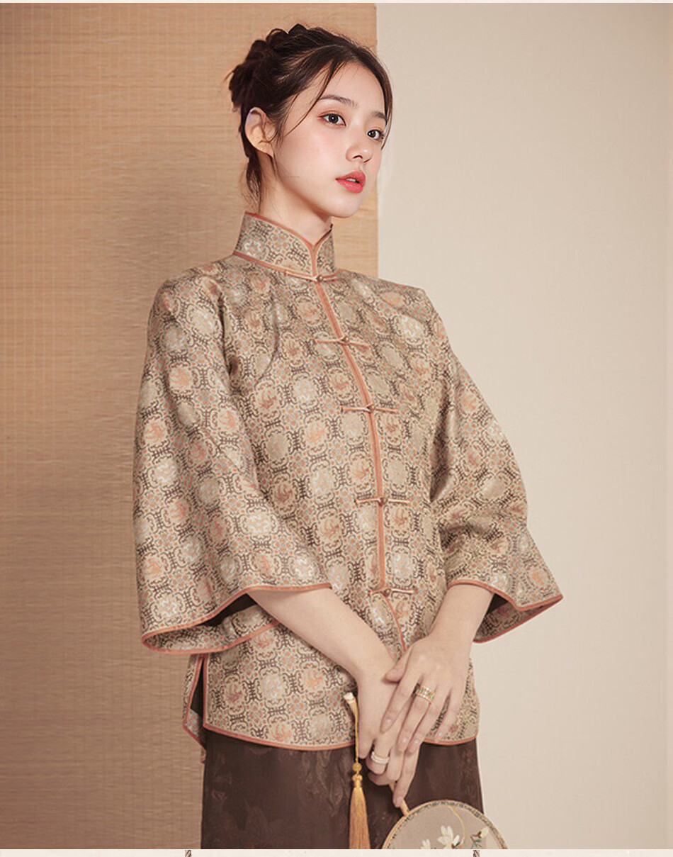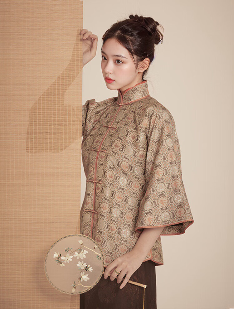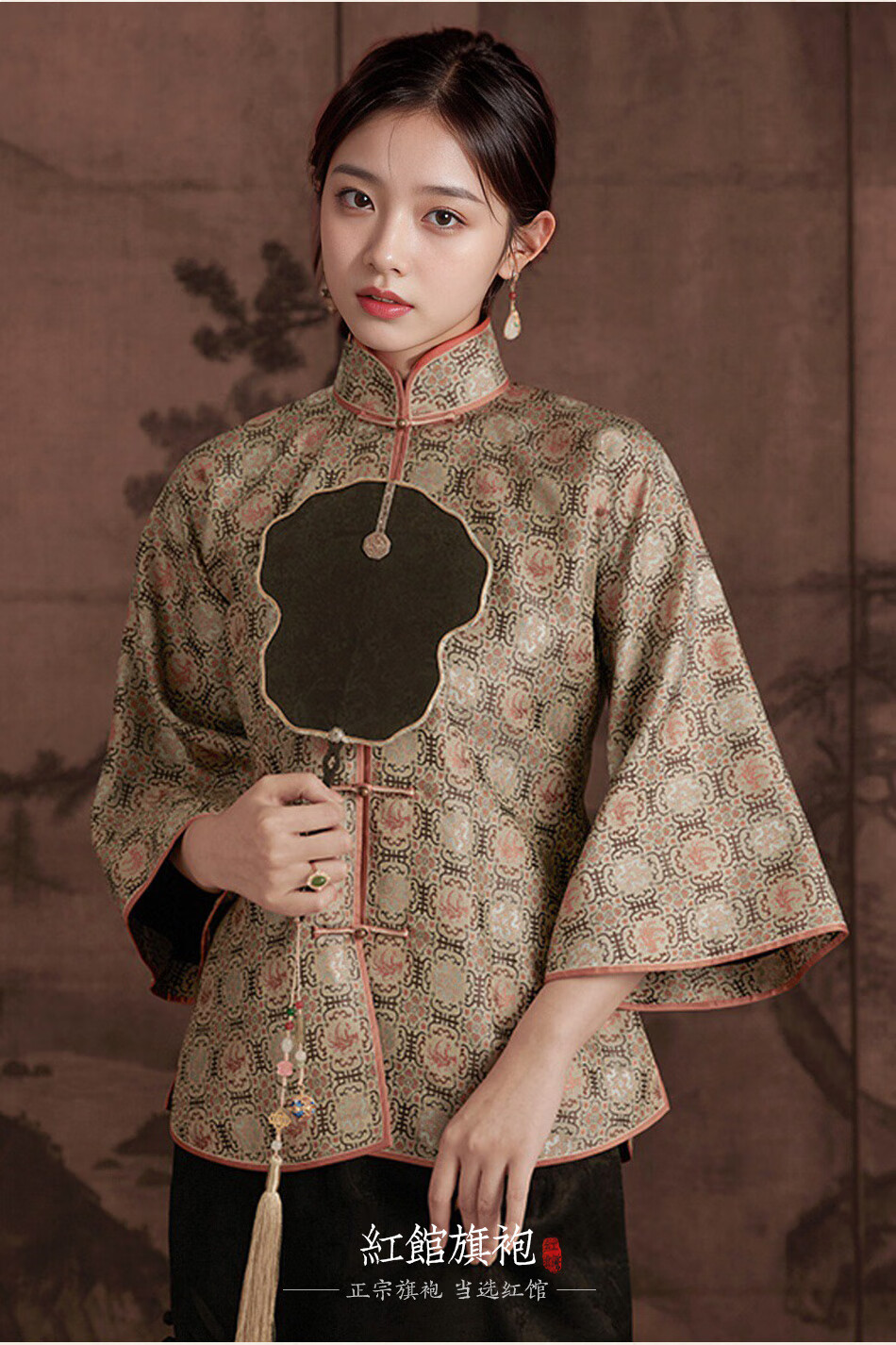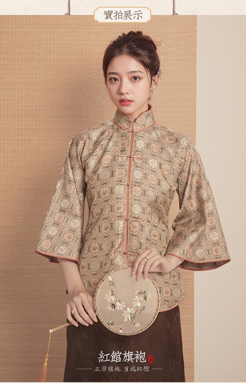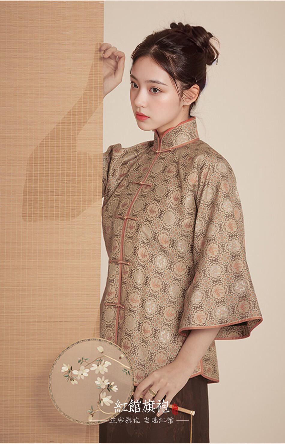 红馆旗袍红馆真丝高端宋锦国风新中式对襟复古倒大袖配马面裙上衣如玉瑾 黄色 S