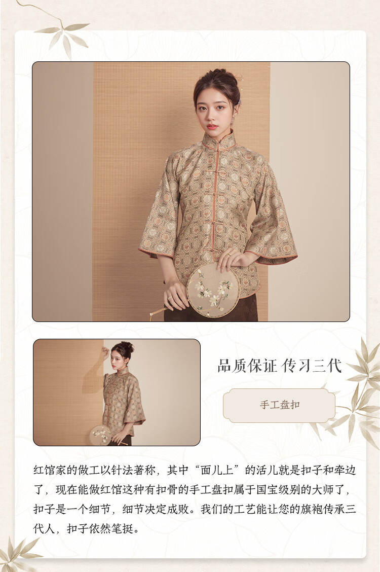 红馆旗袍2025平裁连肩无省收腰真丝提花缎传统复古手工定制旗袍柳条风 绿色 S