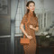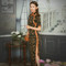 红馆旗袍2025春夏新款花罗香云纱长款倒大袖宽松复古高端旗袍翠玉簪 黄色 S