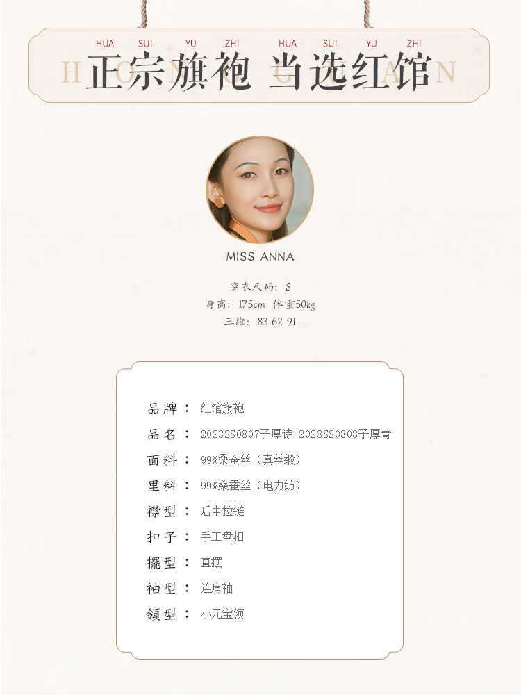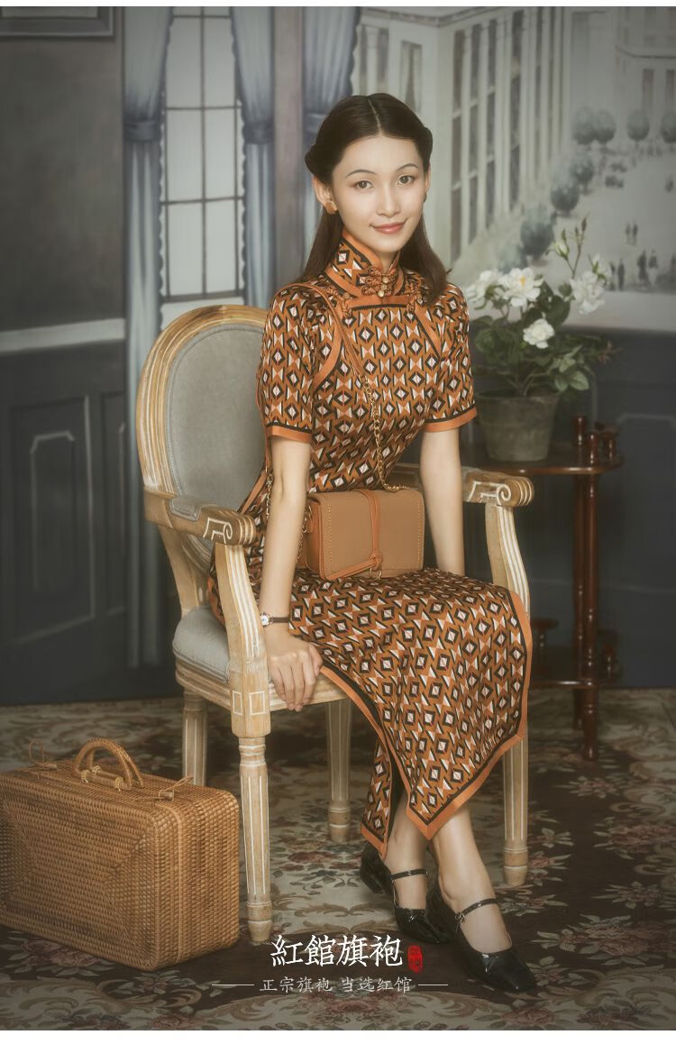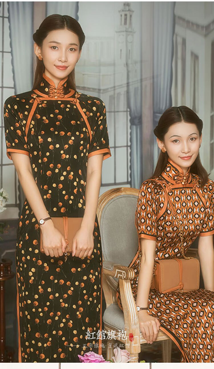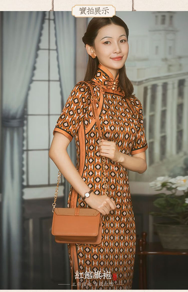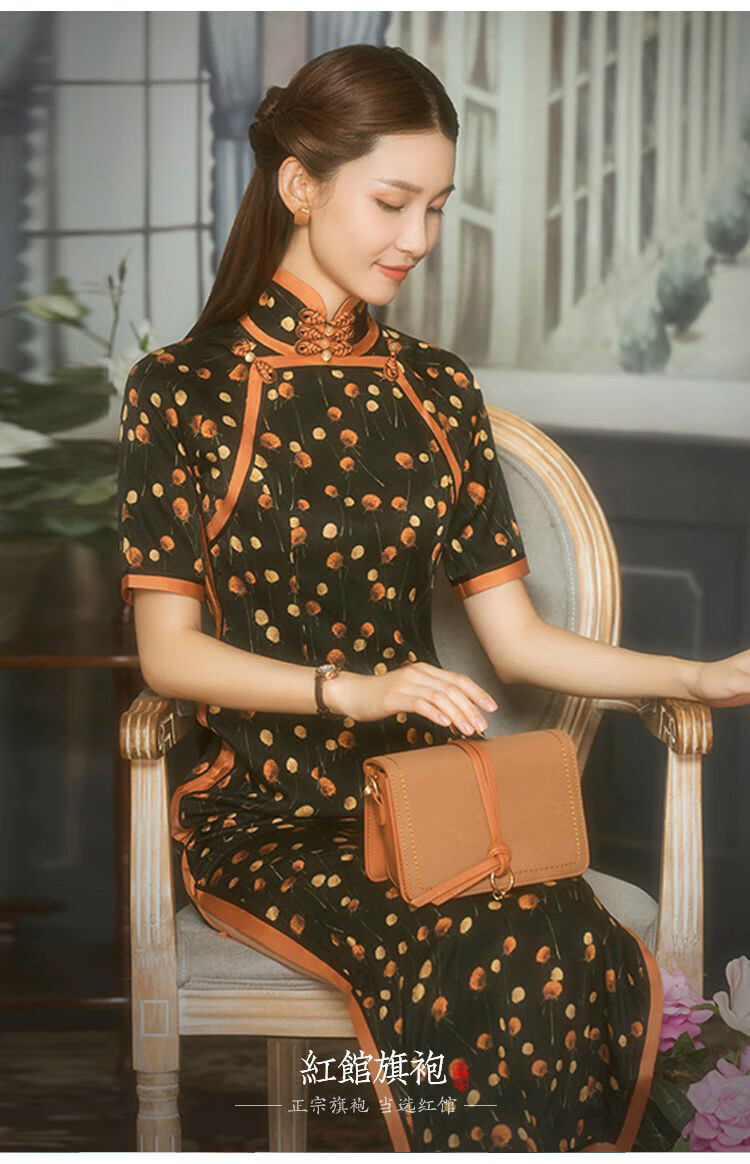 红馆旗袍真丝旗袍2025新款夏季显瘦传统高端民国真丝长款短袖子厚诗 黑色 S