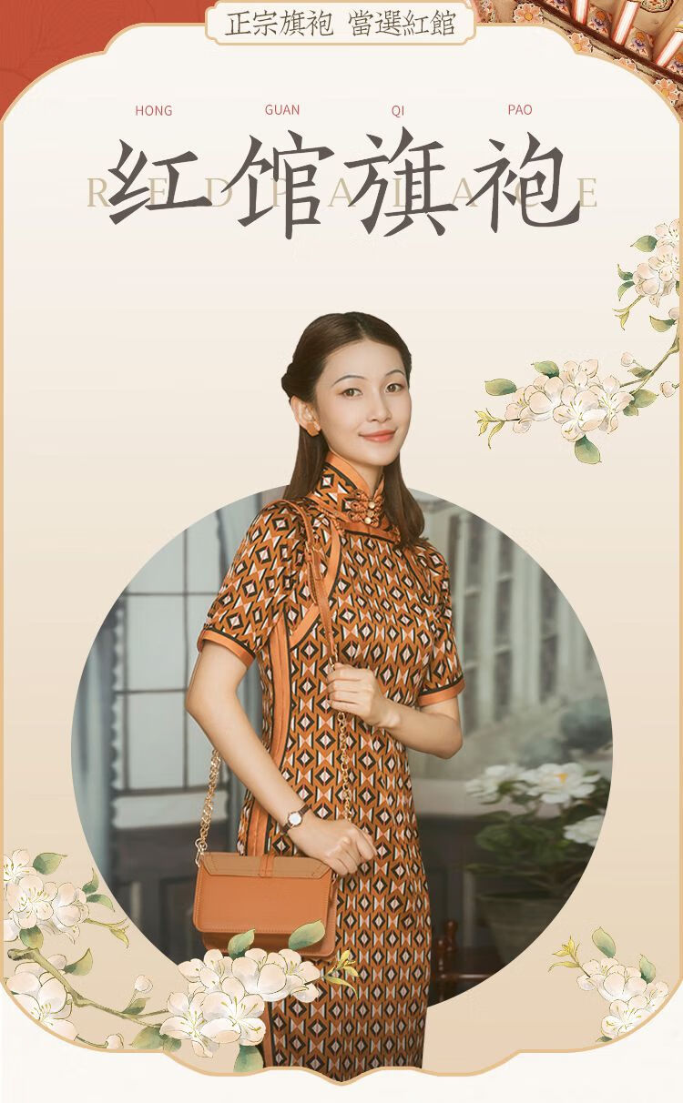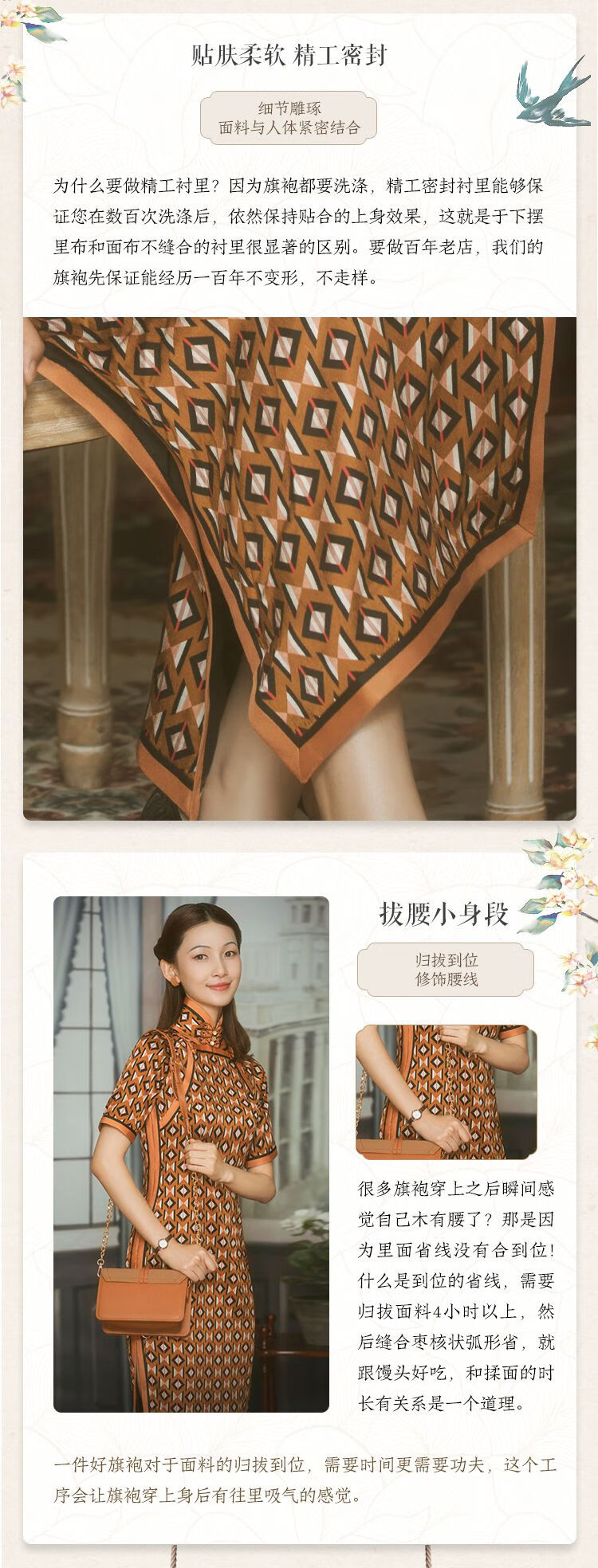 红馆旗袍2025春夏新款高端优雅年轻款少女改良高端真丝旗袍百花妆 浅黄色 M