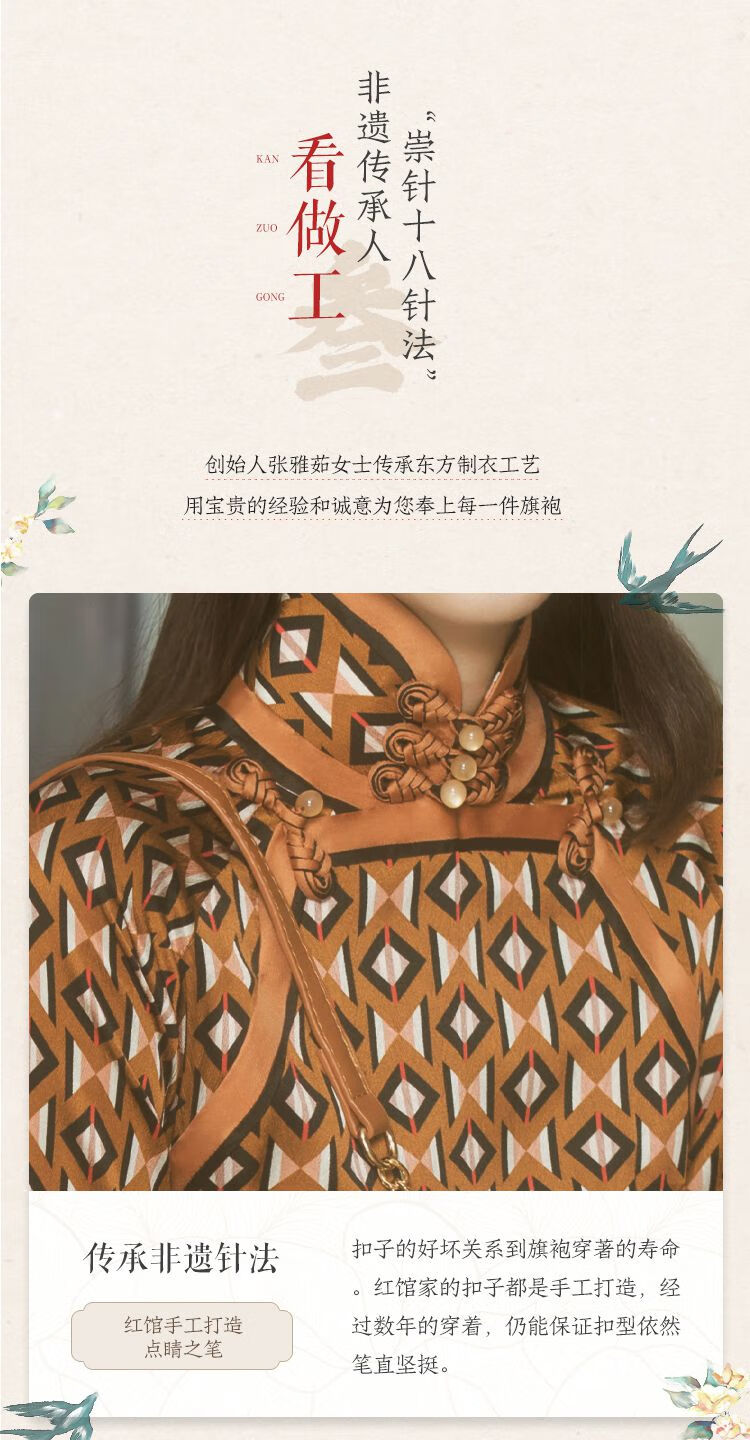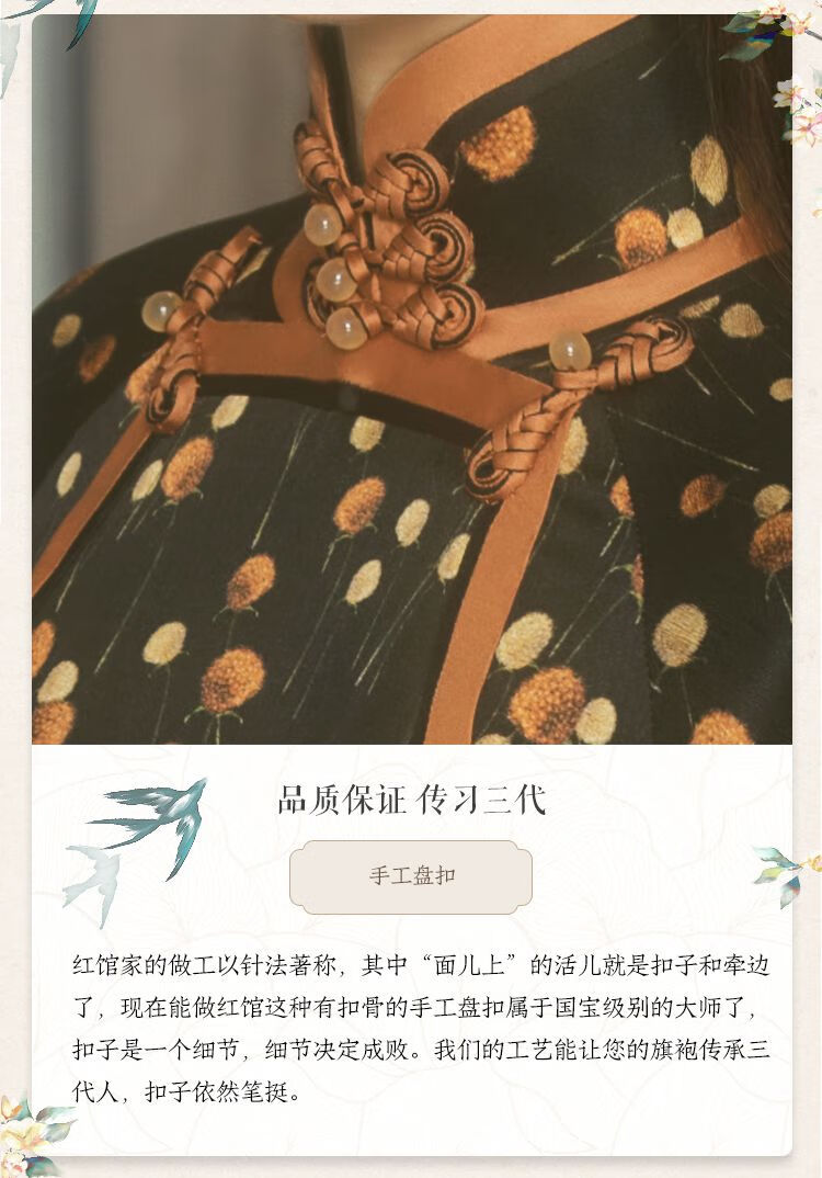 红馆旗袍2025平裁连肩无省收腰真丝提花缎传统复古手工定制旗袍柳条风 绿色 S