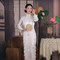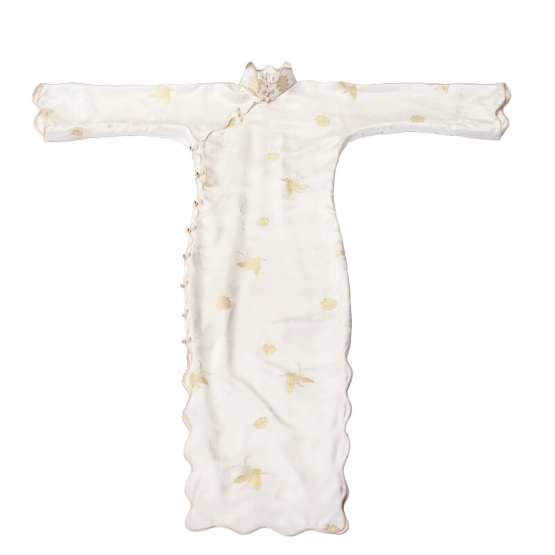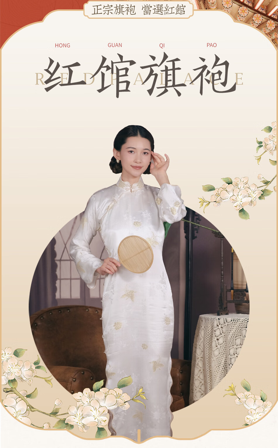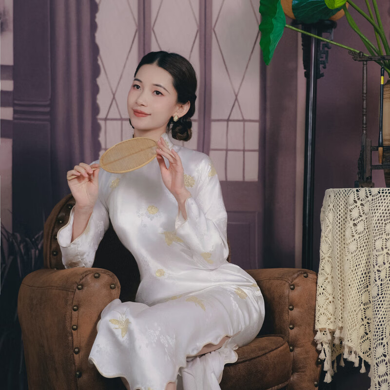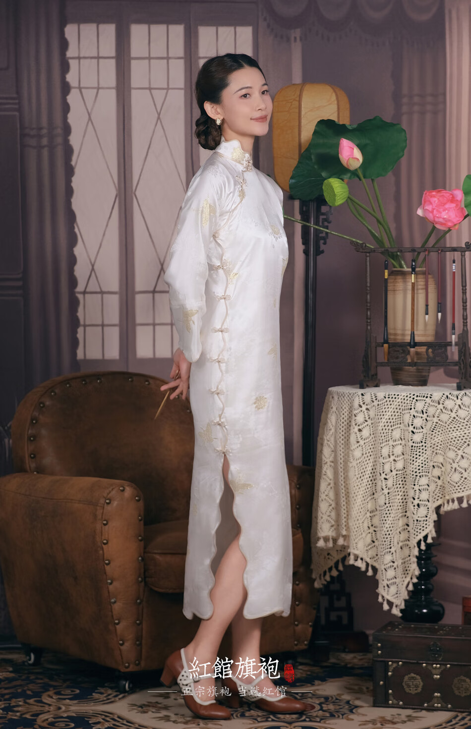 红馆旗袍2025新款春夏织金真丝老料奢华高端老上海品牌长款大码旗袍凤蝶词 白色 S