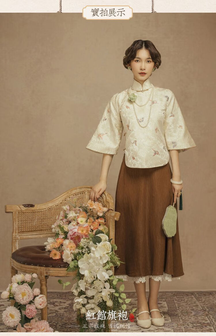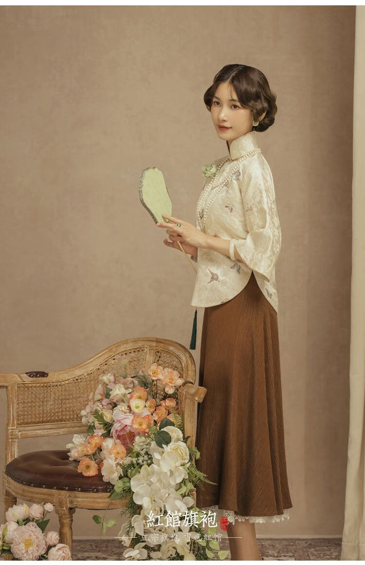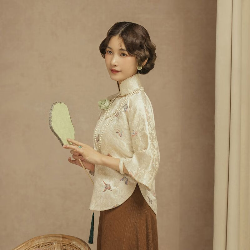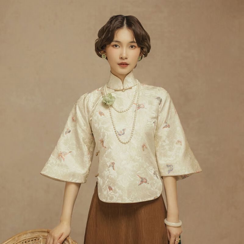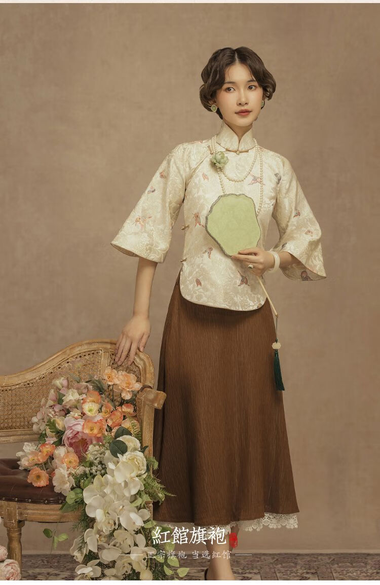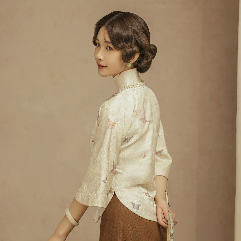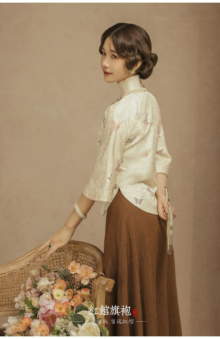 红馆旗袍2025春夏高端宋锦云锦马面裙套装上衣高贵的新中式国风上衣惊蝶起 白色 S