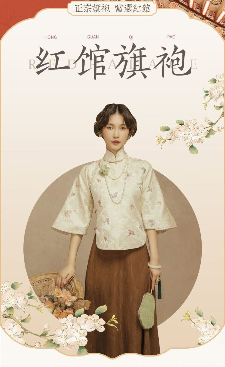 红馆旗袍2025春夏新款高端优雅年轻款少女改良高端真丝旗袍百花妆 浅黄色 M
