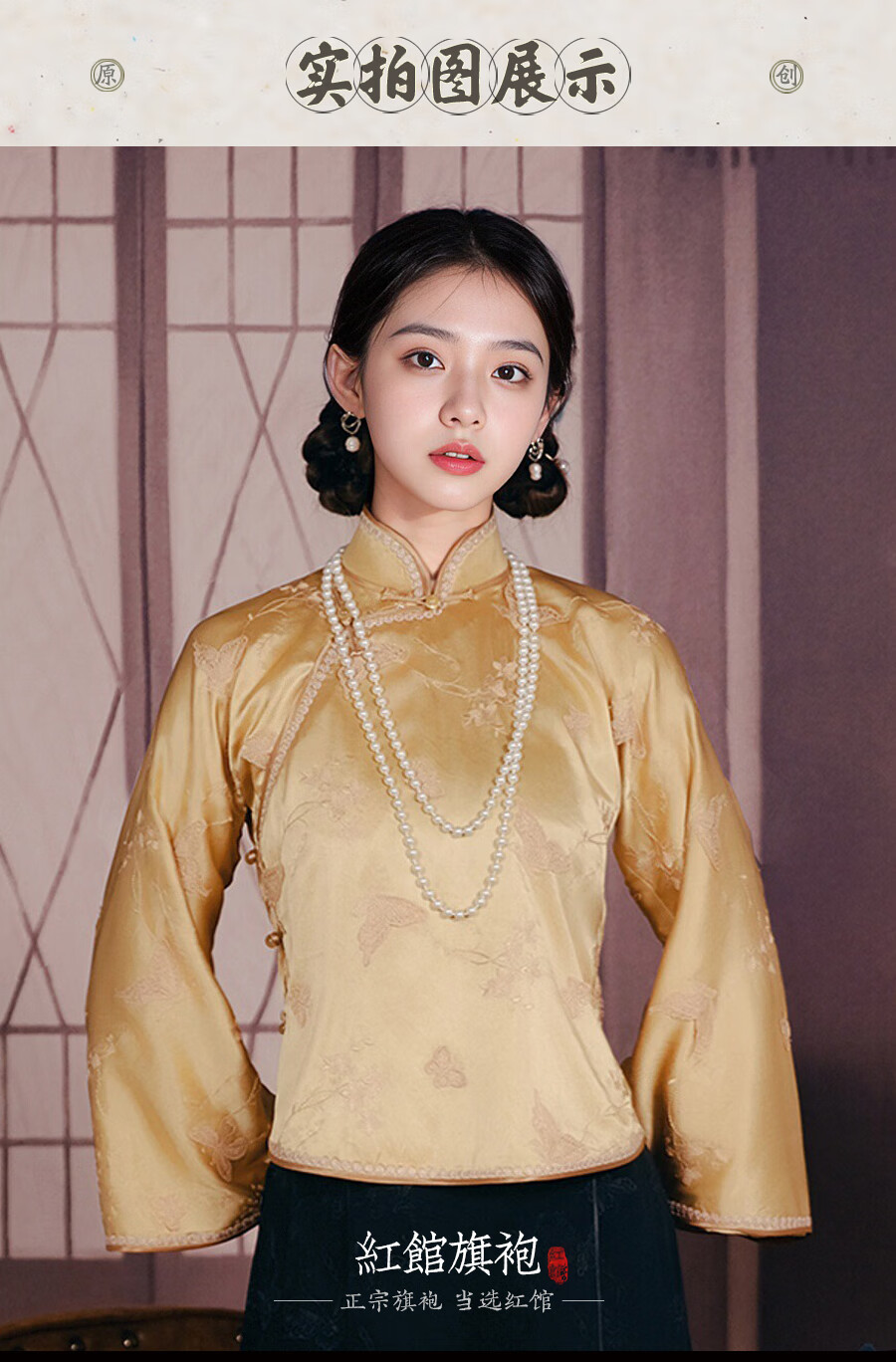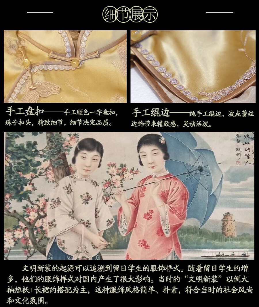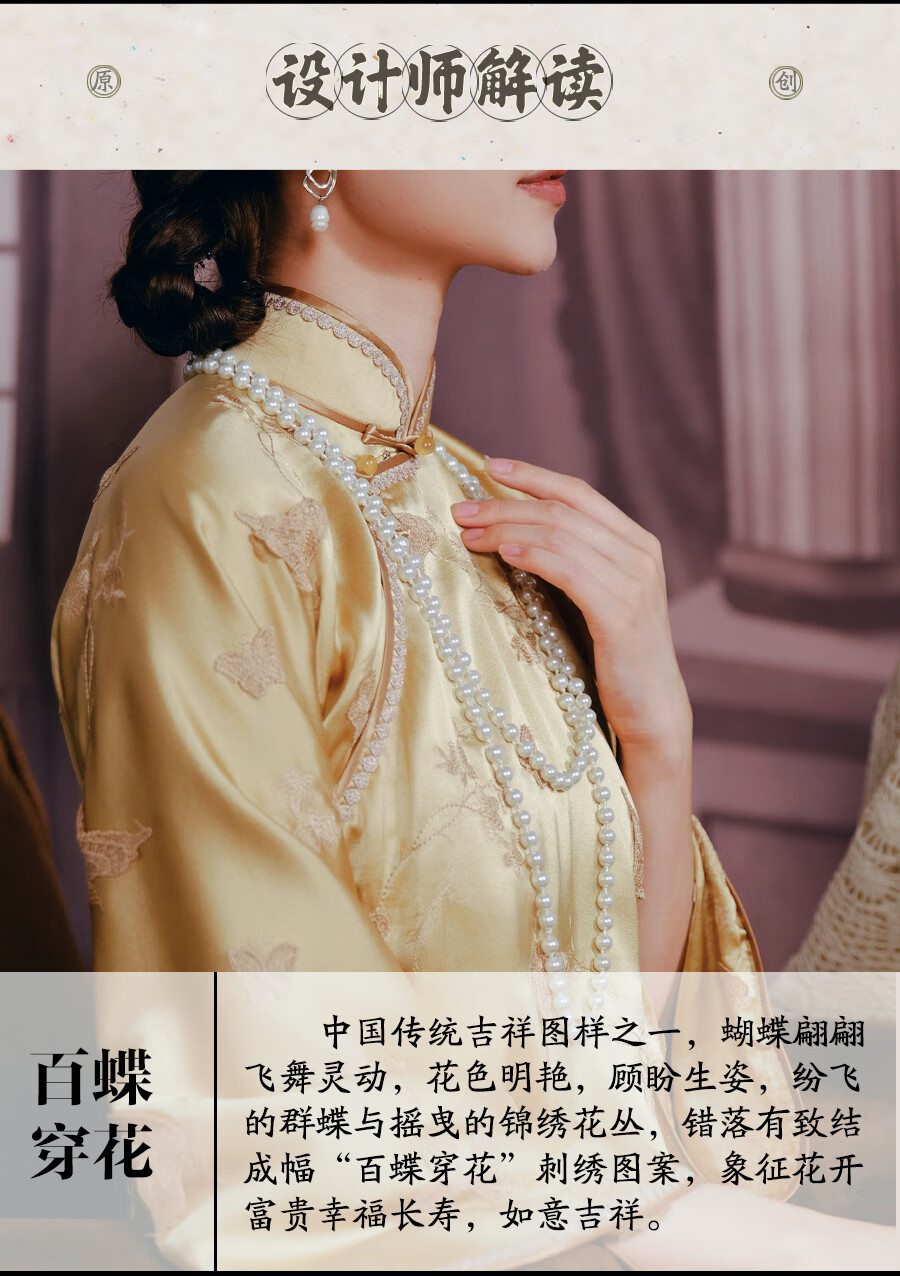 红馆旗袍2025春夏新款高端优雅年轻款少女改良高端真丝旗袍百花妆 浅黄色 M