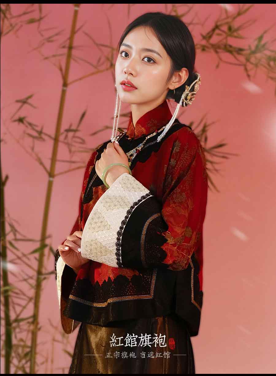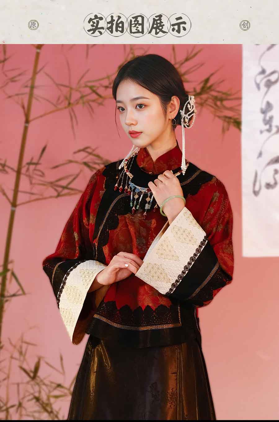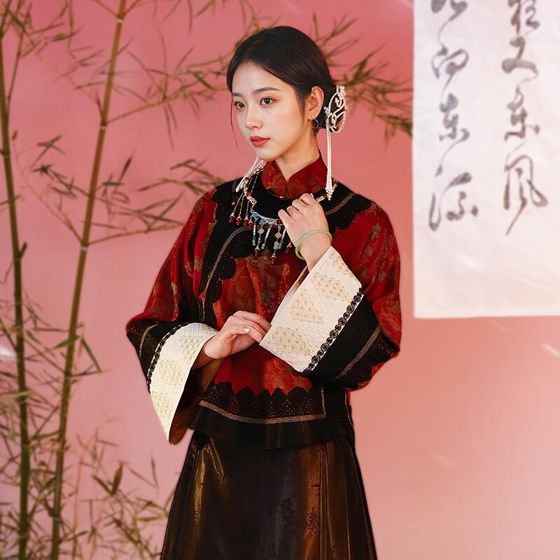 红馆旗袍2025春夏新款高端宋锦香云纱喜庆新娘国风新中式复古小上衣应韶年 红色 S