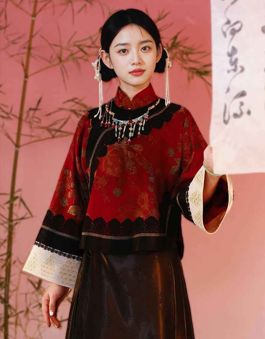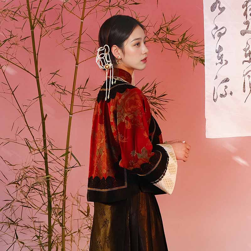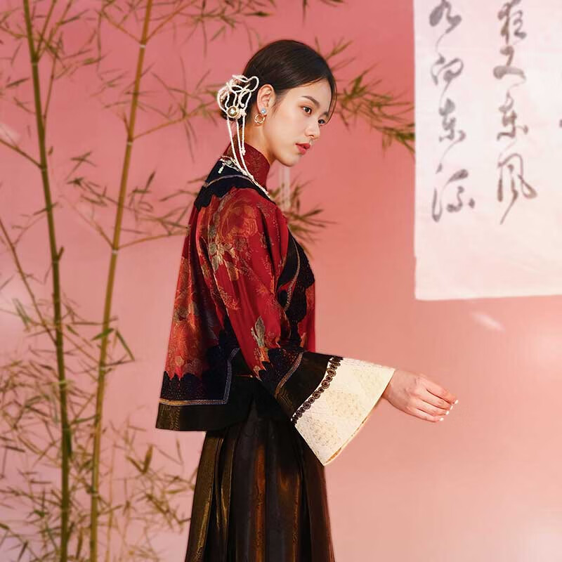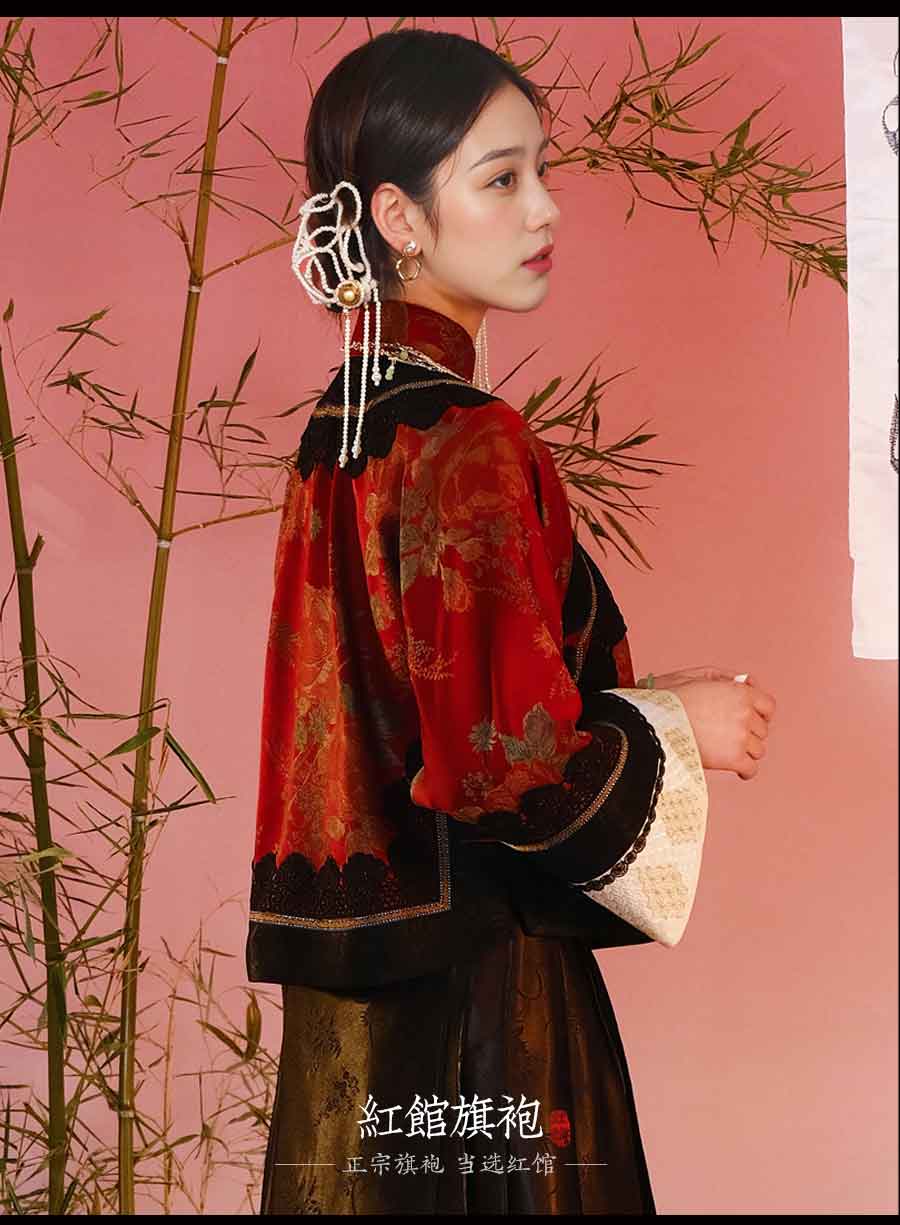 红馆旗袍2025春夏新款高端宋锦香云纱喜庆新娘国风新中式复古小上衣应韶年 红色 S