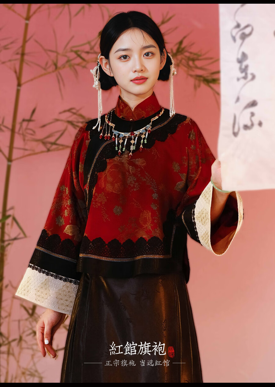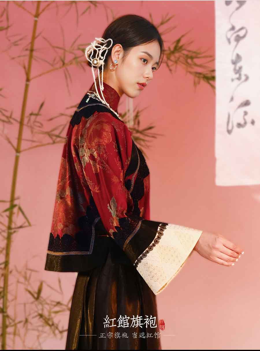 红馆旗袍2025春夏新款旗袍搭配半身裙A字半裙新中式绣花裙秋月凉 黑色 S