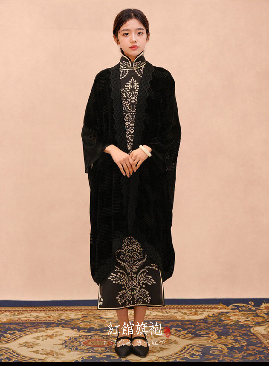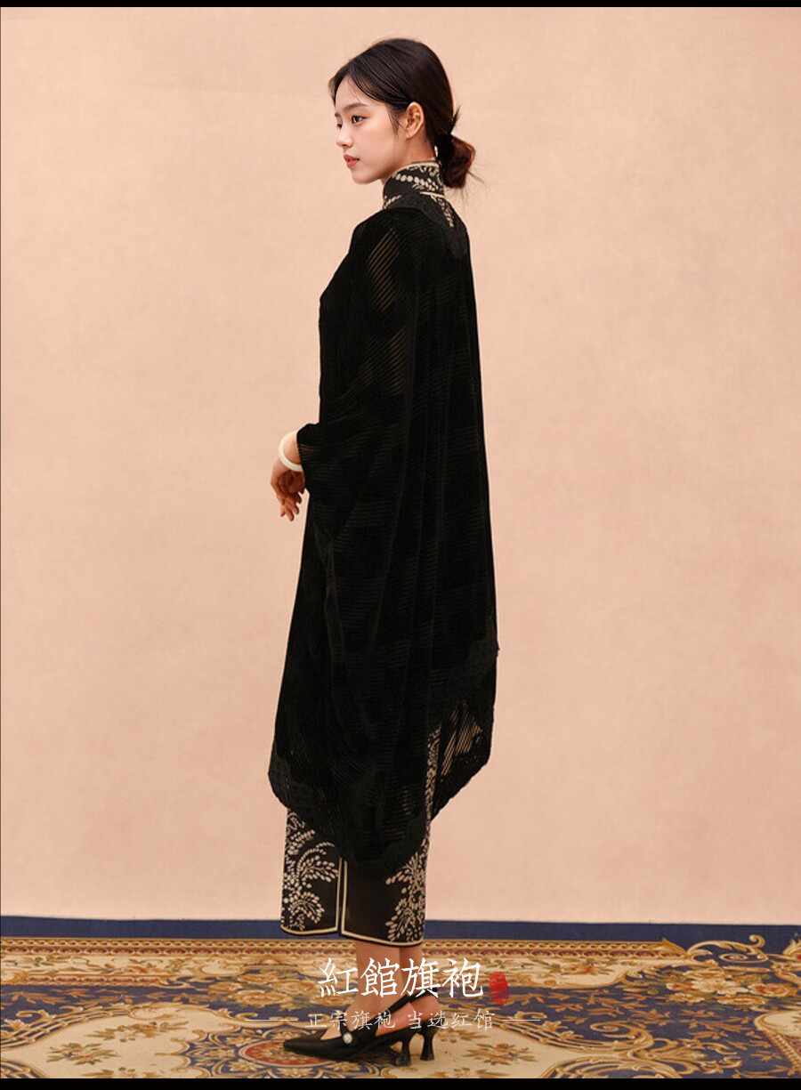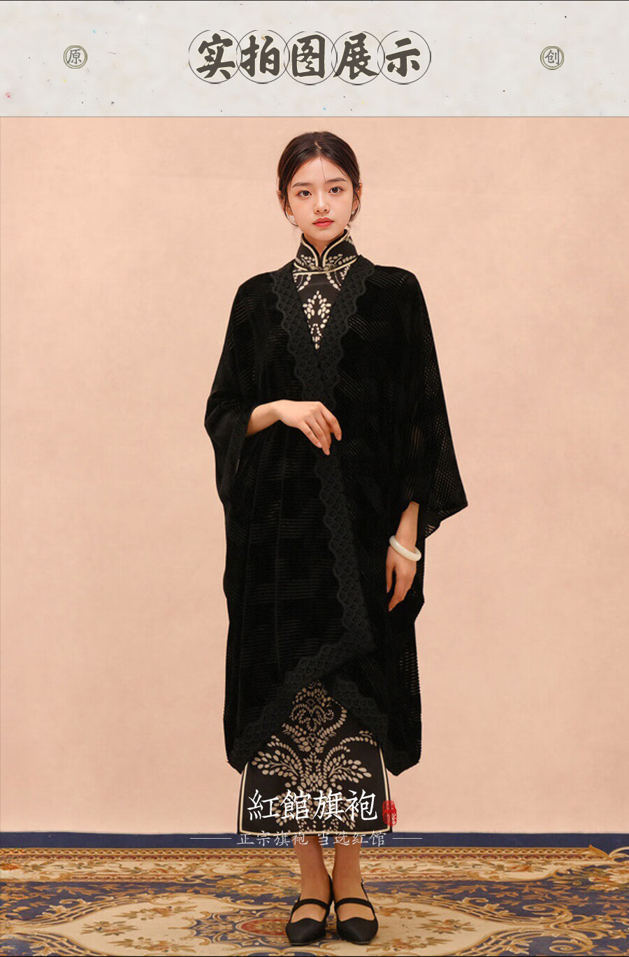 红馆旗袍旗袍2025新款披肩春旗袍搭配披肩外套外搭高端披肩百搭翠梧黛 黑色 S