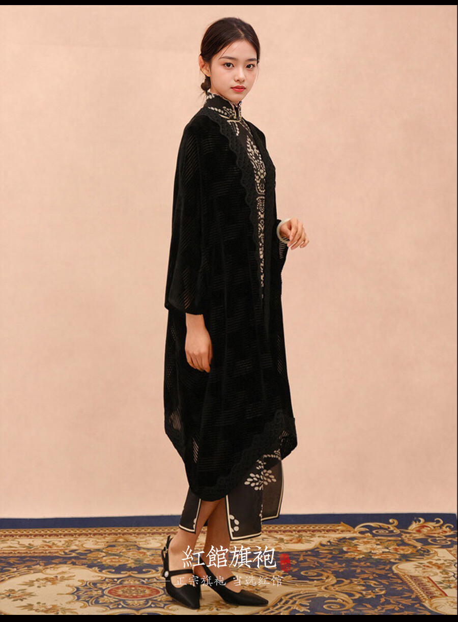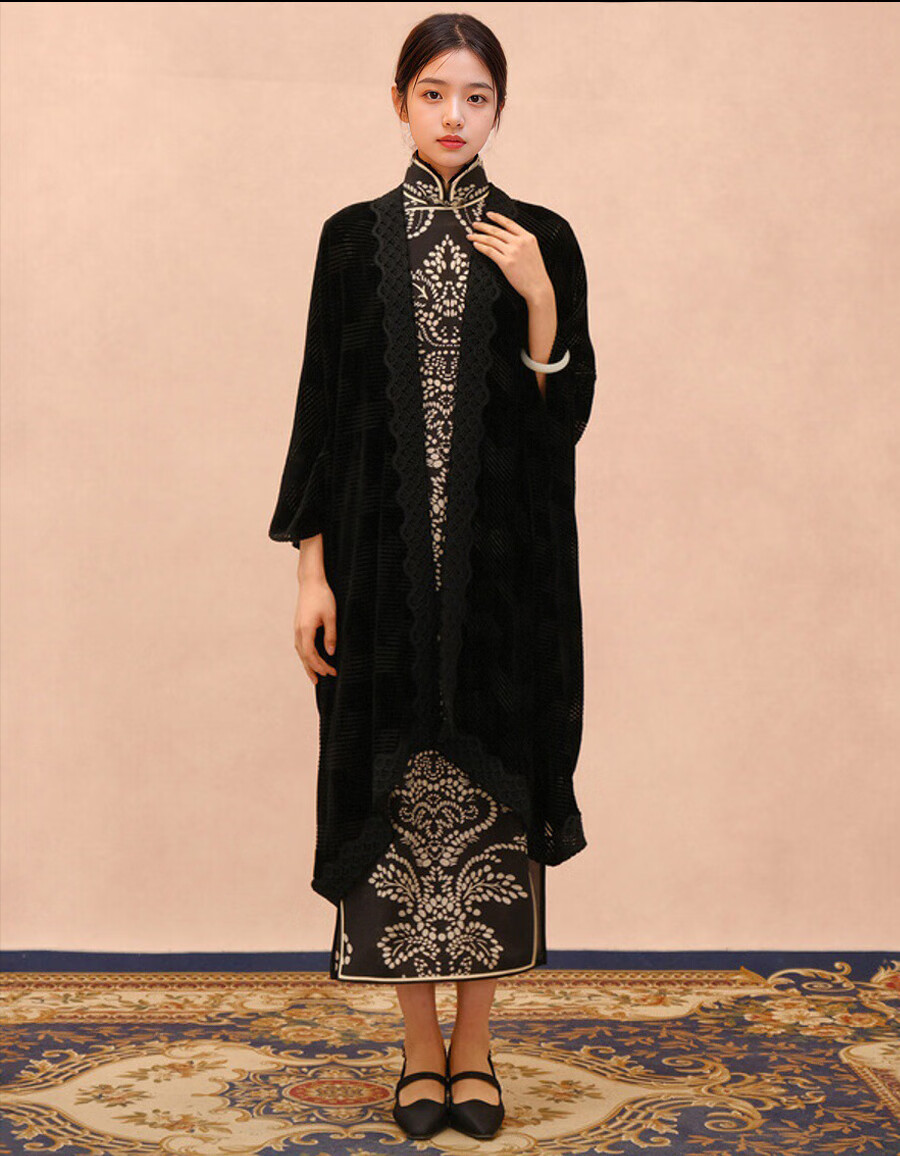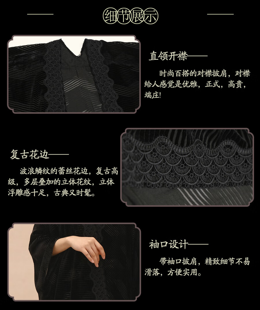 红馆旗袍旗袍2025新款披肩春旗袍搭配披肩外套外搭高端披肩百搭翠梧黛 黑色 S
