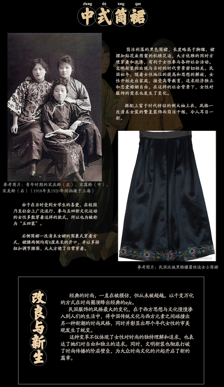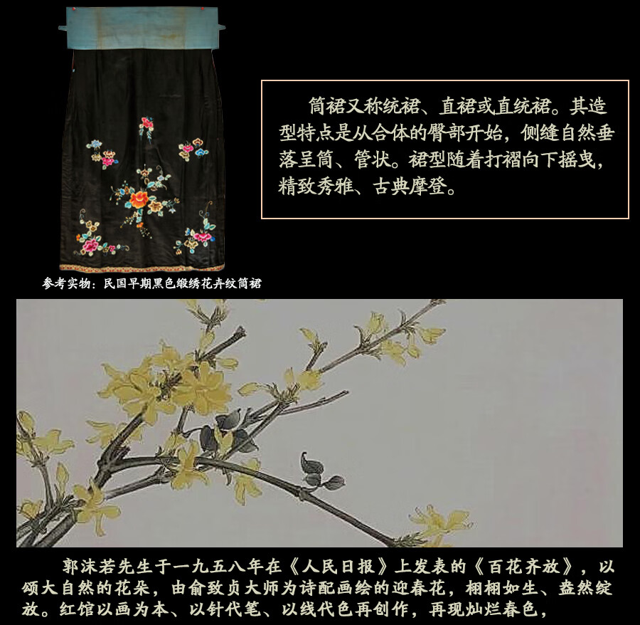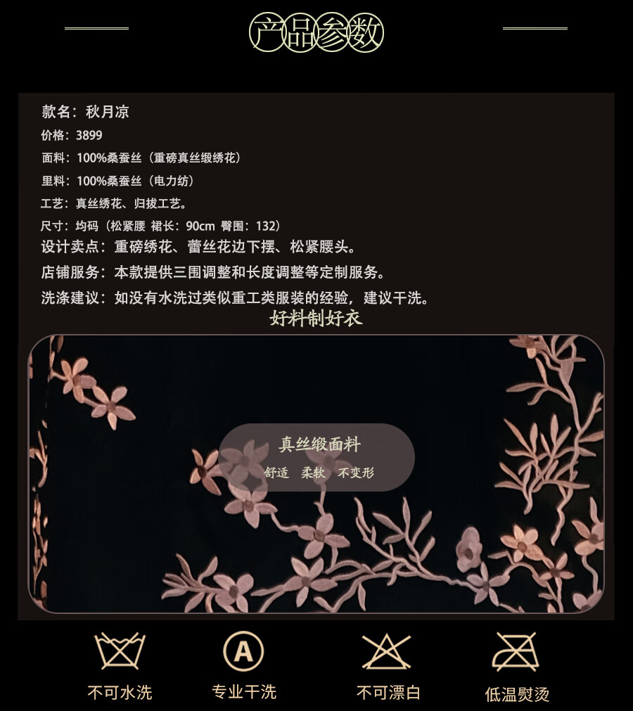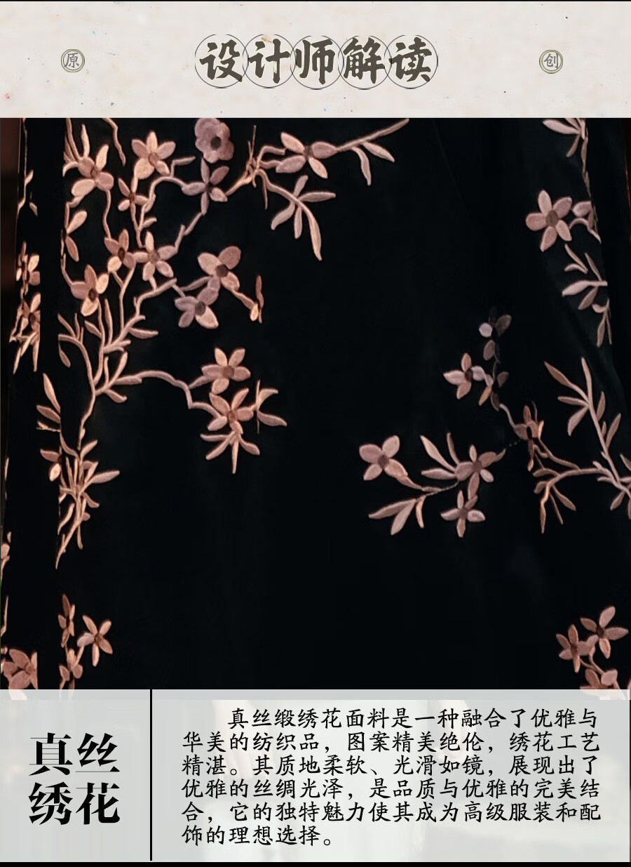 红馆旗袍2025春夏新款旗袍搭配半身裙A字半裙新中式绣花裙秋月凉 黑色 S